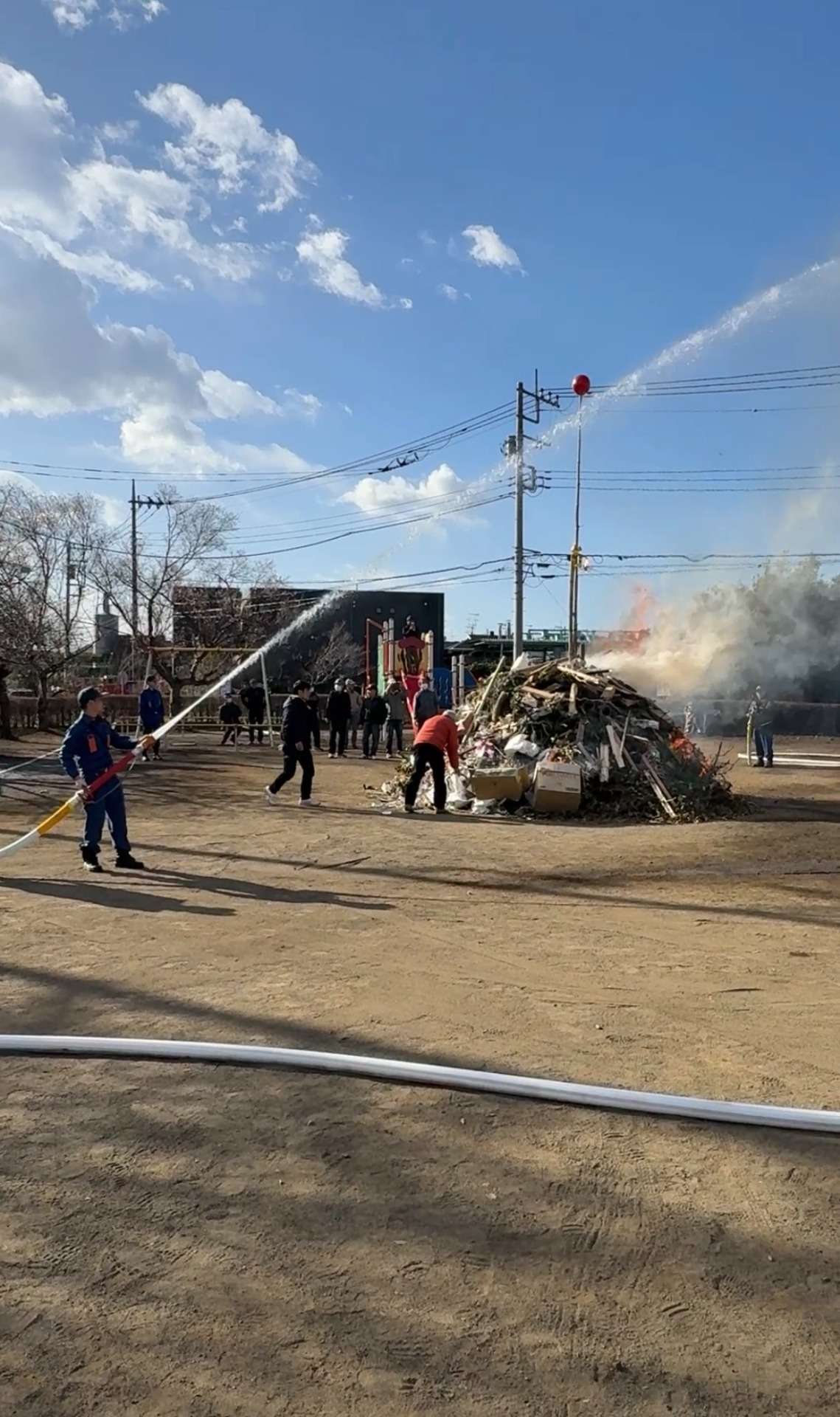 風が強くて心配された着火ですが、消防の方が常に放水しながらだったので無事に終えることが出来ました。