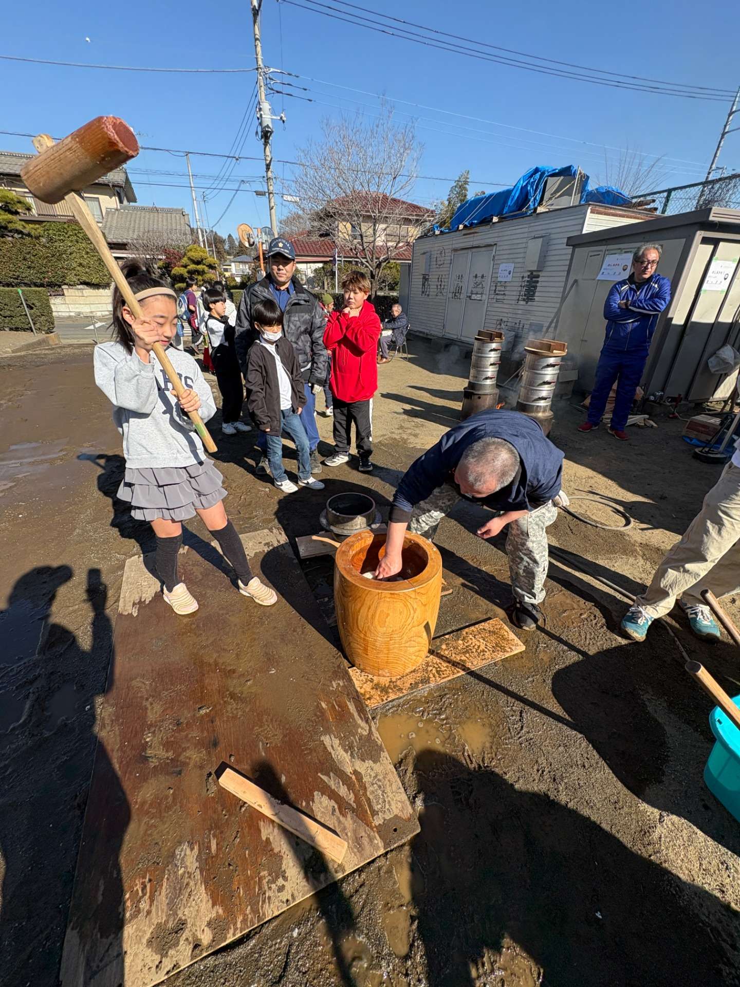 朝から薪割りをしたり、餅つきの準備をしたり、火の番をしたり、地域の方とお話をしたり。